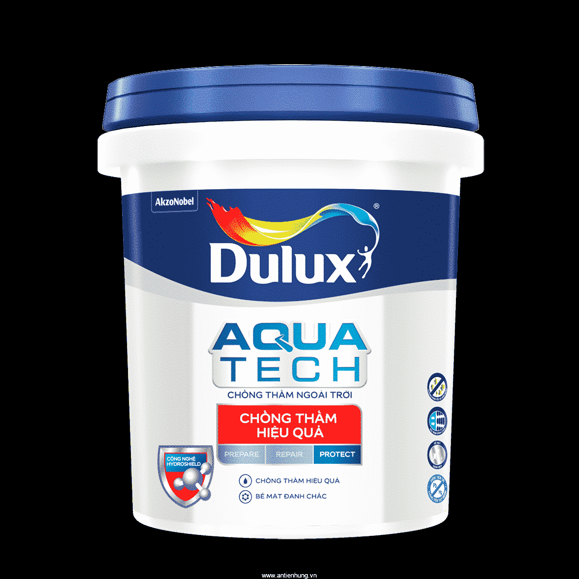 Dulux AquatechTM Chống Thấm Hiệu Quả với công nghệ tiên tiến Hydroshield vượt trội có khả năng tăng cường các liên kết hóa học của hợp chất, tạo bề mặt đanh chắc và gia tăng khả năng chống thấm. Ngoài ra, Dulux AquatechTM Chống Thấm Hiệu Quả còn đem lại bề mặt sáng mịn cho tường nhà bạn.